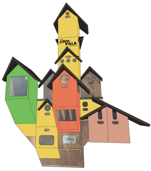 La Birdies Villa est conçue comme un hôtel, organisée en architecture verticale, avec des volumes variés, indépendants et adaptés à chaque espèce, favorisant la cohabitation tout en respectant leurs besoins spécifiques.